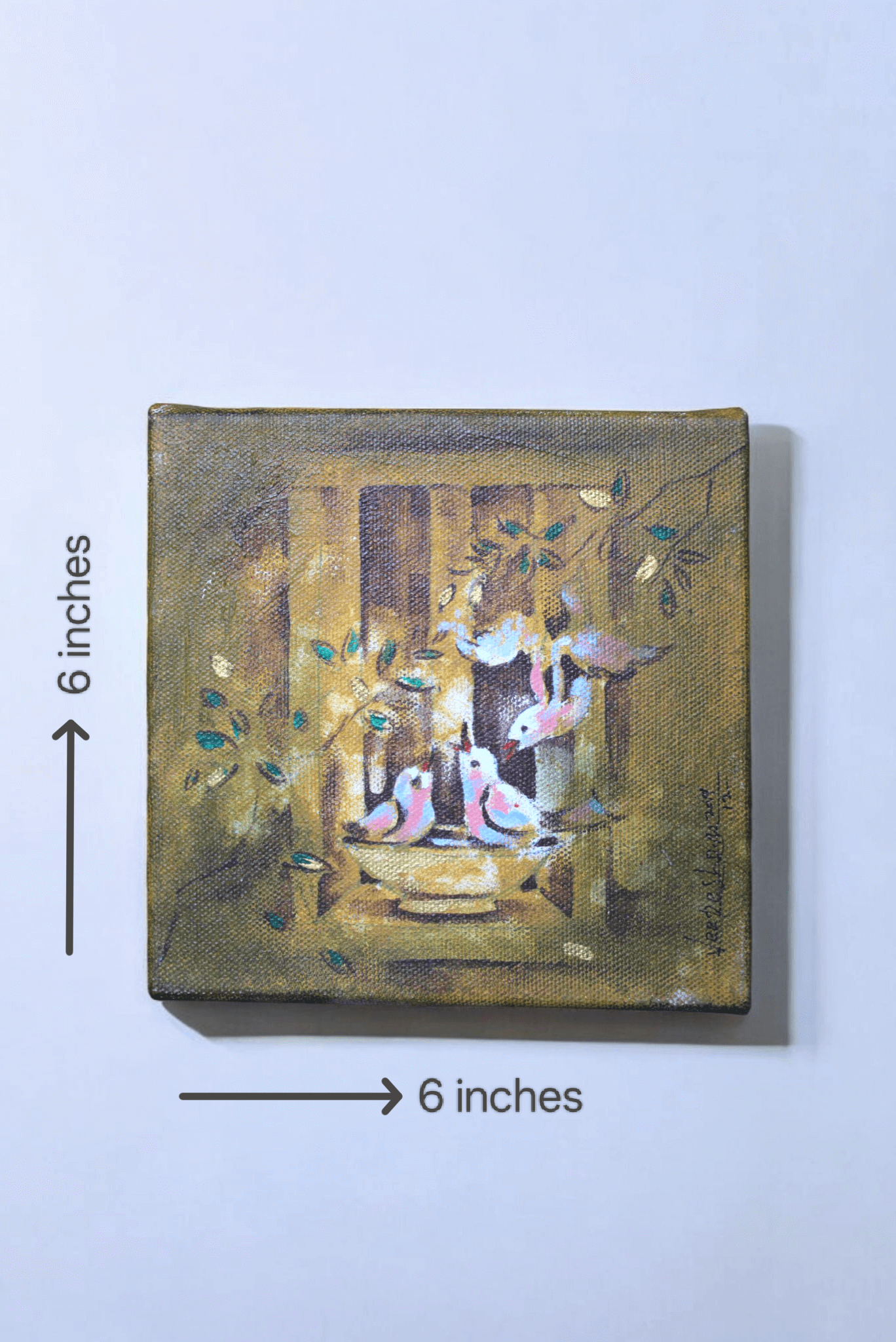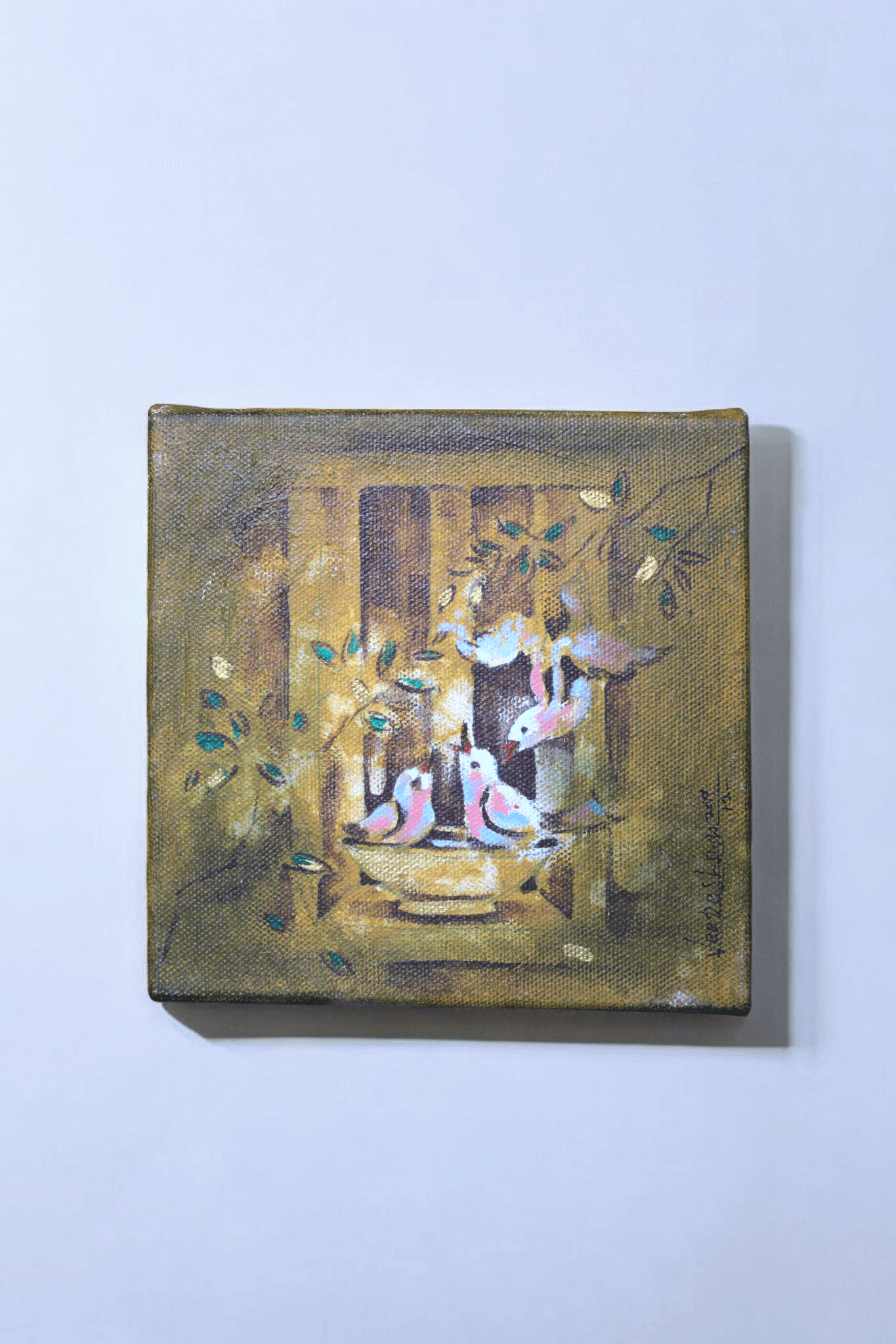 Gathering of Sparrows is an acrylic on canvas artwork that captures a peaceful moment as a small flock of sparrows perches around a water bowl, surrounded by warm, earthy tones. The delicate brushstrokes and soft hues bring depth and tranquility, reflecting the simple yet profound beauty of nature. The composition highlights the birds’ quiet interactions, evoking a sense of harmony, familiarity, and stillness. This artwork seamlessly blends tradition with timeless elegance, making it a perfect addition to any space. Why Should You Own This Artwork? ? Symbol of Peace & Connection ? Sparrows represent companionship, warmth, and the beauty of everyday life. ? Timeless Appeal ? A harmonious blend of traditional artistry and modern aesthetics. ? A Story in Every Stroke ? Captures a fleeting moment of nature?s serenity, bringing a soothing presence to your space. ? Handcrafted Elegance ? A unique piece that adds charm, nostalgia, and depth to your home or office